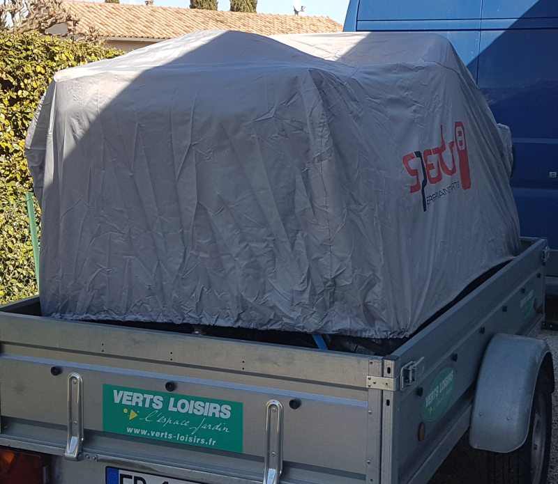 Un bout de liner de piscine permettant de pouvoir se coucher pour réparer la machine sur un sol mouillé, très resistant