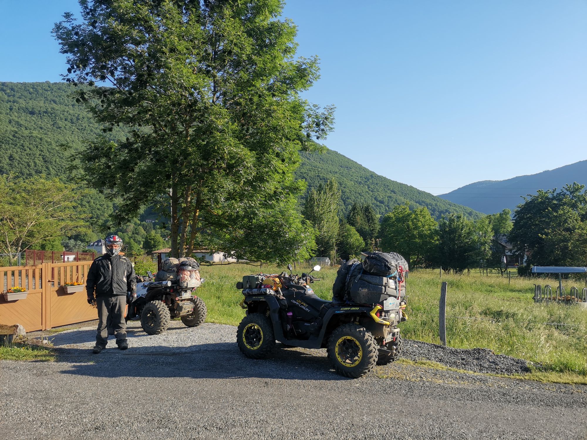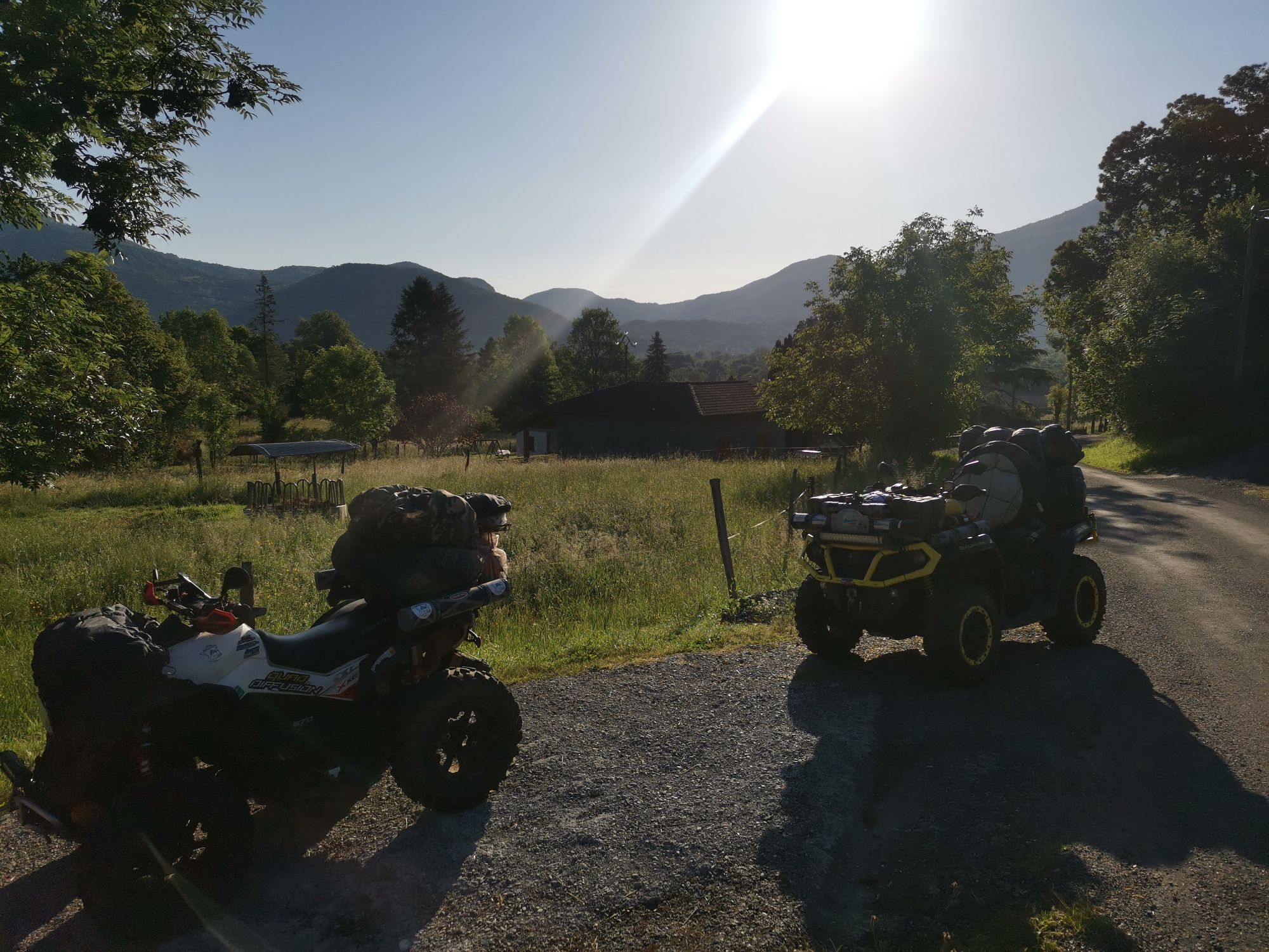 Malheureusement le quad de Séraphin lâche dans une montée, on a cru que c était la courroie et finalement en y regardant de plus près c est le pont arrière qui n enclenche plus. On laisse donc la machine chez des gens et Séraphin le récupérera le soir même. La rando continue.